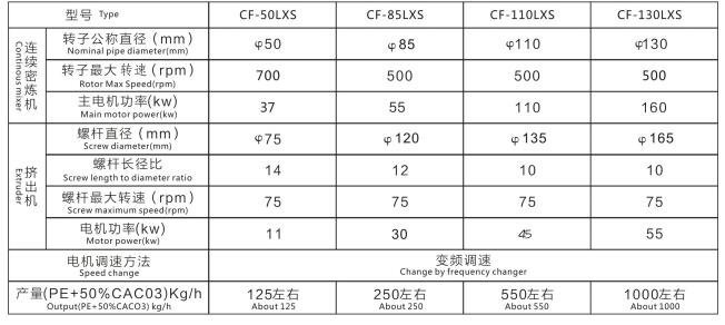 CF-50LXS連續(xù)式密煉機、CF-85LXS連續(xù)式密煉機、CF-110LXS連續(xù)式密煉機、CF-130LXS連續(xù)式密煉機